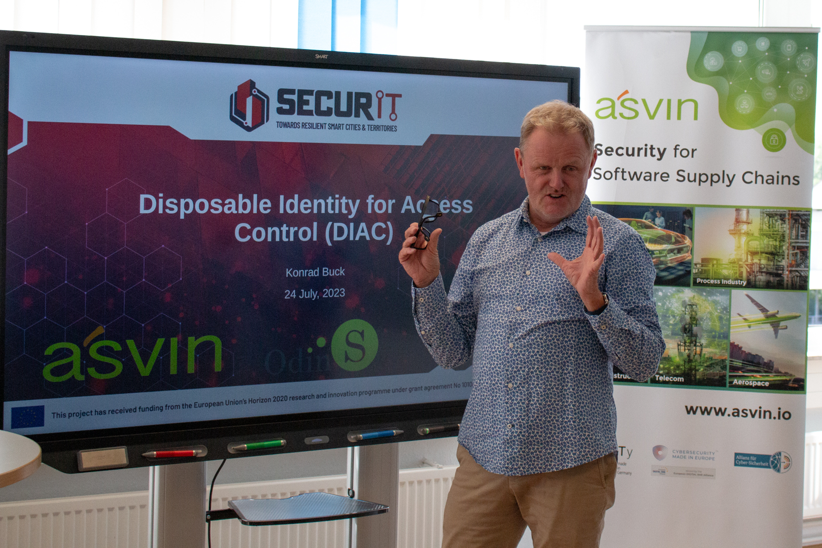 Over the period of last 10 months asvin and OdinS teams have work closely to design technical architecture, implement and integrate technical components for access control based on privacy preserving disposable identity in the Disposable Identity for Access Control (DIAC). It is now time to disseminate the results of the project. On 24 July 2023, our press speaker gave a presentation about DIAC at Cybersecurity Region Stuttgart Meetup.