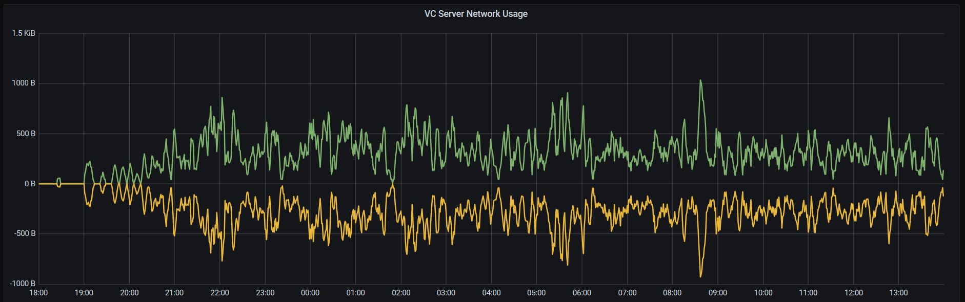 Furthermore, the Version Controller performance was examined by limiting the bandwidth and increasing server-side latency. The next graph demonstrates the changing network bandwidth usage with corresponding requests and responses. For clarity, how check rollout and update success requests affected the bandwidth used by the version controller server are represented as a positive for incoming traffic while outgoing traffic as a negative. The asvin BeeHive update distribution platform property of horizontal pod scaling provides seamless adaption for high traffic and load balancing.