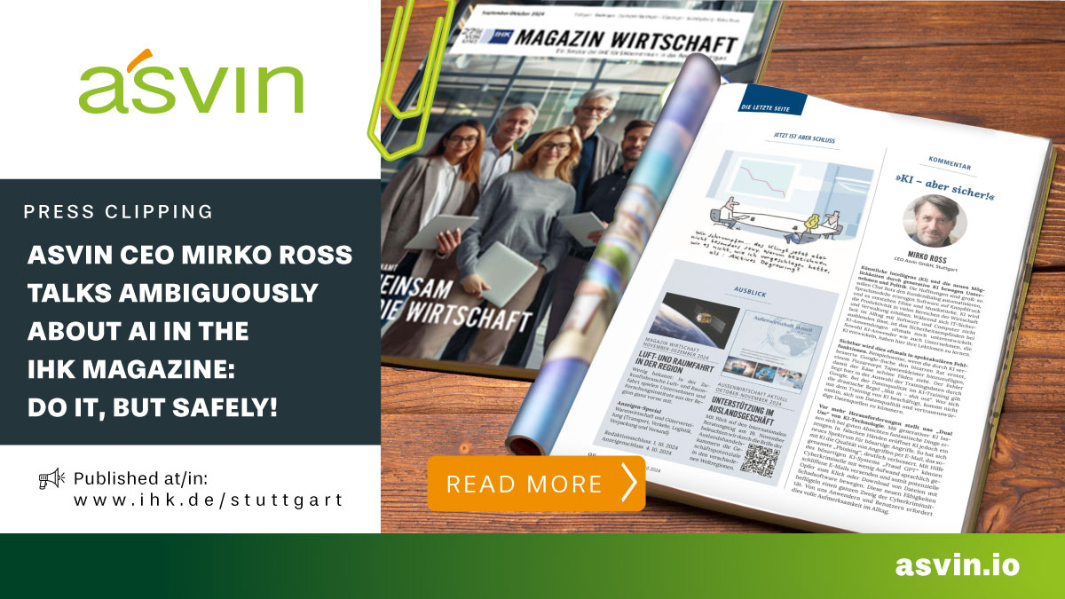 • Mirko Ross talks ambiguously about AI in the IHK magazine: Do it, but safely!