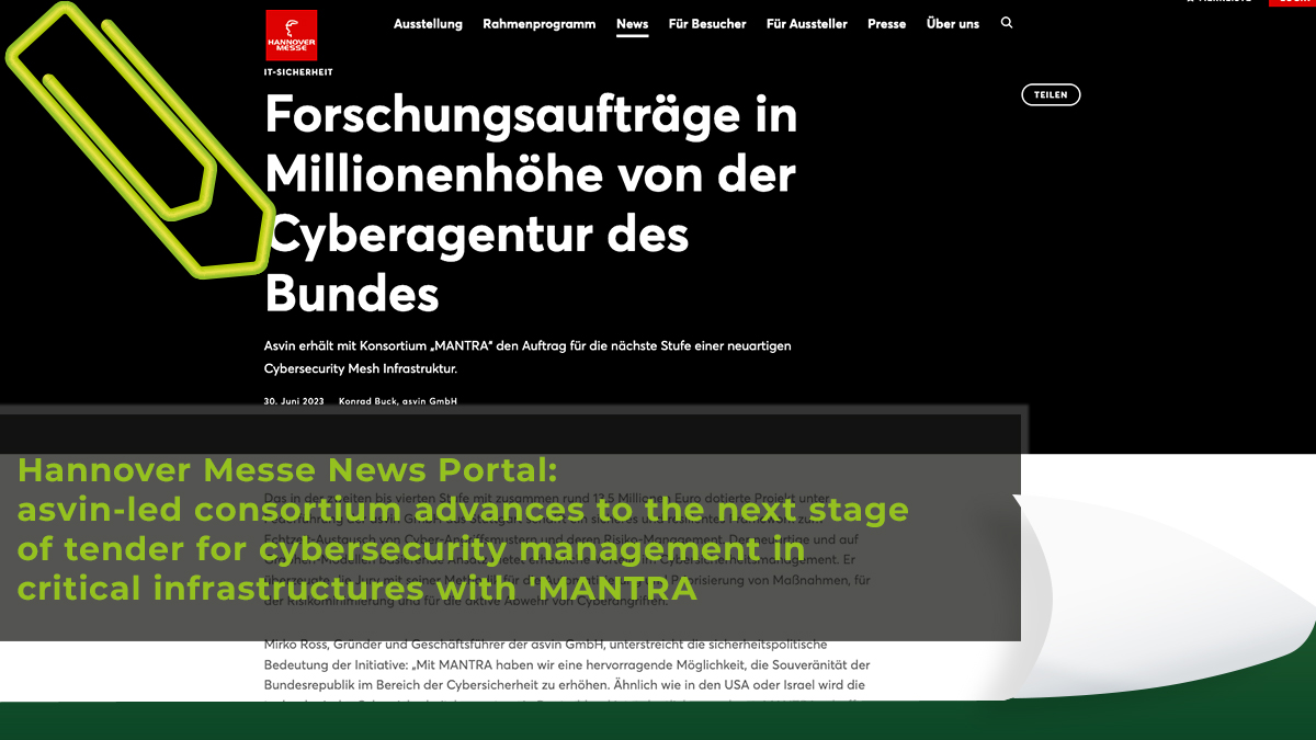 • Hannover Messe: asvin-led consortium reaches next tender stage for cybersecurity management with ‘MANTRA