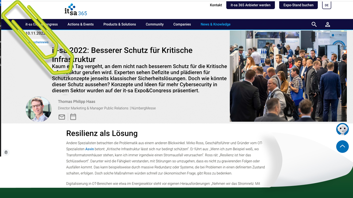 • Mirko Ross in den it-sa-Branchenews vom 10.11.22: Mit Smartgrids vergrößert sich die Angriffsfläche