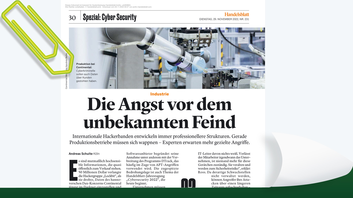 • Handelsblatt: Hackerbanden stoppen! asvin-Experte Ross sagt, wie.