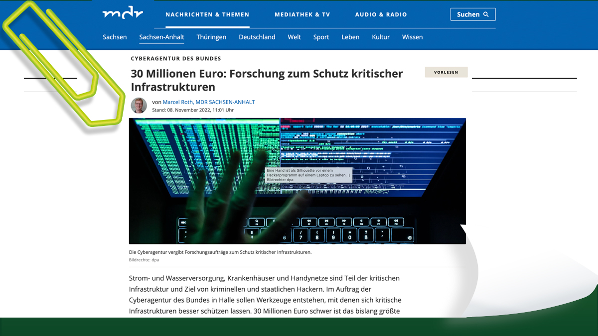 • MDR Nachrichten: 30 Millionen Euro: Forschung zum Schutz kritischer Infrastrukturen