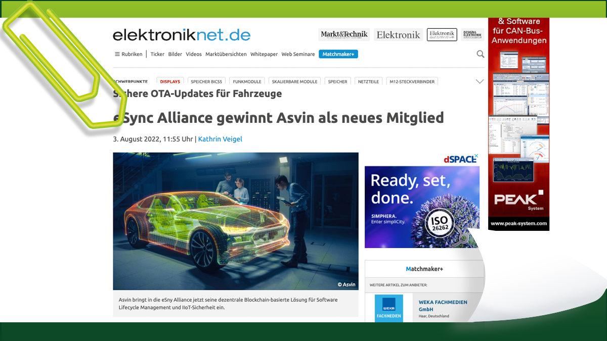 • Die eSync Alliance kooperiert ab sofort mit Asvin – Ein Artikel von elektroniknet.de