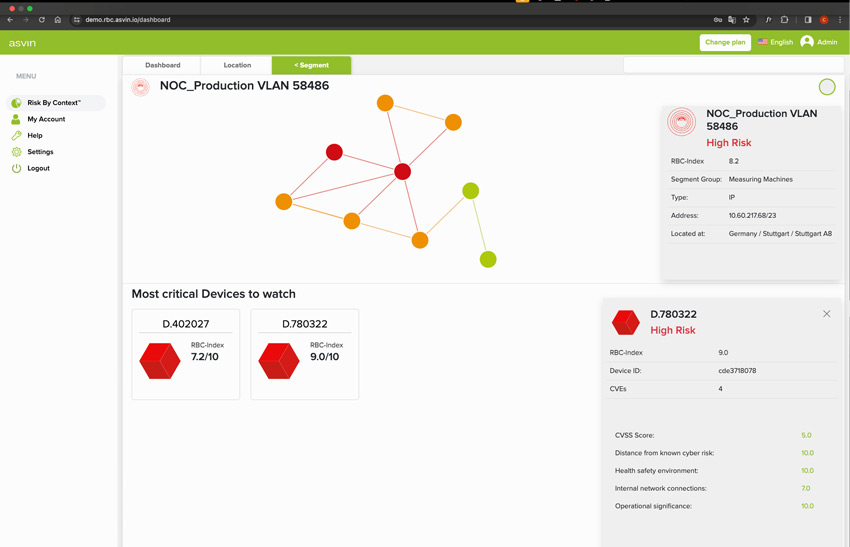 At the segment level, you get detailed insights into each individual asset, their connections to each other, and the rating of the individual context elements. These insights are used to create the Risk by Context Index.